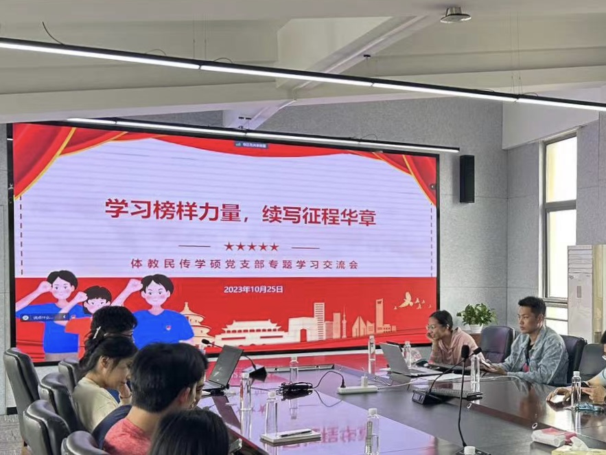 为深入学习感悟习近平新时代中国特色社会主义思想,贯彻落实党的二十大精神和学校第十四次党代会精神,发挥优秀党员的先锋模范作用,增强党员使命与责任感。2023年10月25日下午,幸运飞艇开奖网-幸运飞艇开奖记录 体教民传学硕党支部于学院四楼会议室以“学习榜样力量,续写征程华章”为主题开展党日活动,会议由党支部组织委员张泽阳主持。