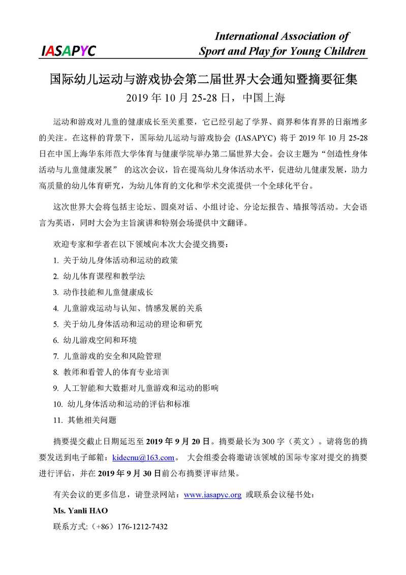国际幼儿运动与游戏协会第二届世界大会通知暨摘要征集.pdf